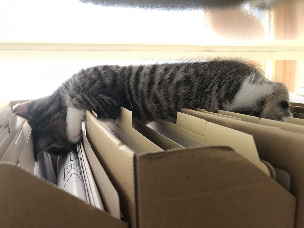 会社にも慣れてきて、こんなところとか(書類の上)、あんなところとか(ファイルの上)