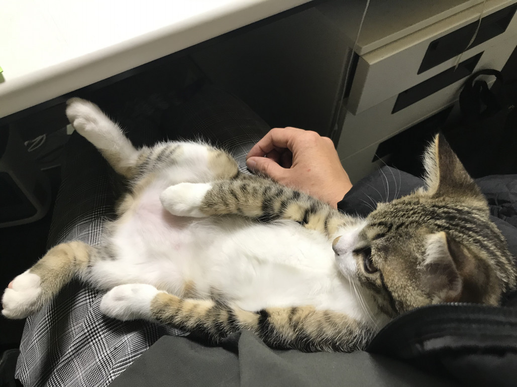 仕事をしていると、ミーガちゃんが邪魔しにきます。